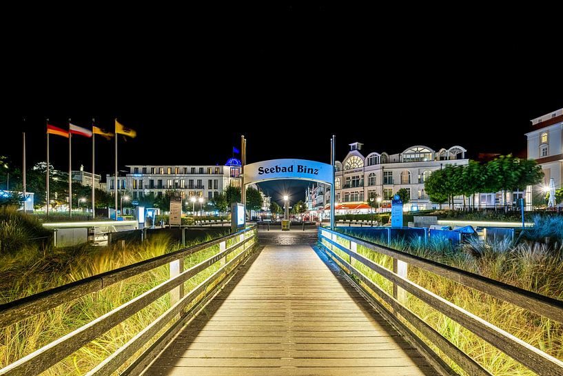 Ein Blick auf Binz bei Nacht von der Seebrücke am Strand