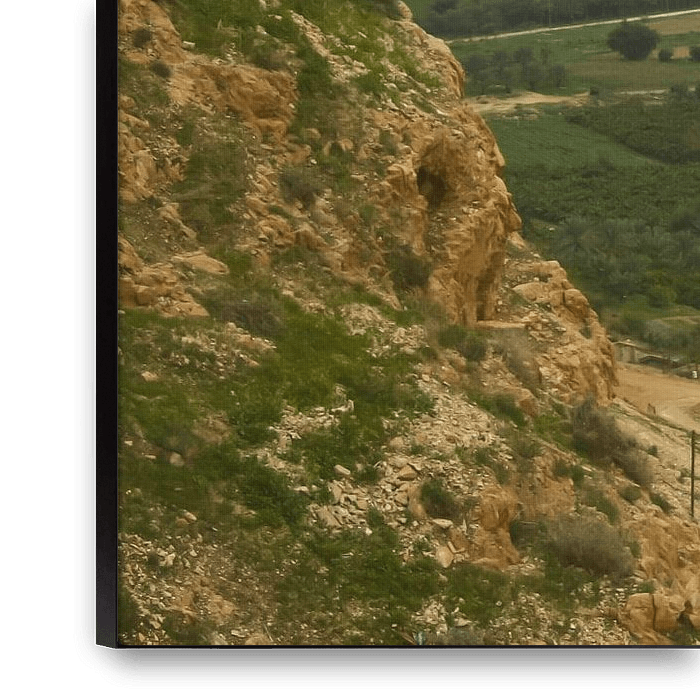 Bestelle das Foto Ein Blick auf das blühende Tal vom Berg der Versuchung in Jericho, einem Ort, an dem der Legende nac von Michael Semenov als Reproduktion auf Leinwand, Alu-Dibond, als Poster, Fototapete oder Acrylglasbild.