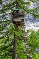 Bestelle das Foto Ein Hochsitz an der Lärche von Christa Kramer als Kunstdruck auf Leinwand, Alu-Dibond, als Poster, Fototapete oder Acrylglasbild.