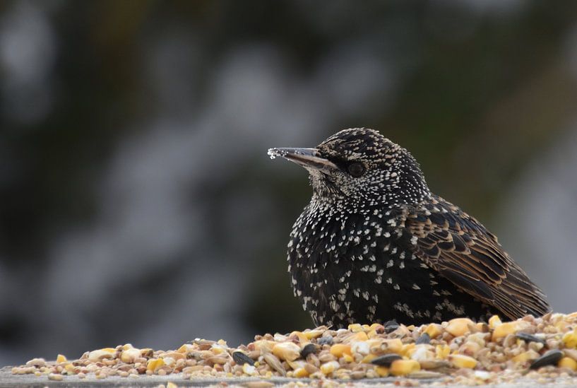 Bestelle dieses Vögel Wandbild Ein Star am Futterhäuschen von Claude Laprise als Reproduktion auf Leinwand, Alu-Dibond, als Poster, Fototapete, ArtFrame oder Acrylglasbild, maßgefertigt in höchster Qualität.