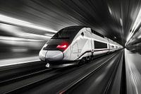 Bestelle dieses moderne Wandbild Ein TGV rast durch den Bahnhof von Skyfall als Kunstdruck auf Leinwand, Alu-Dibond, als Poster, Fototapete oder Acrylglasbild.