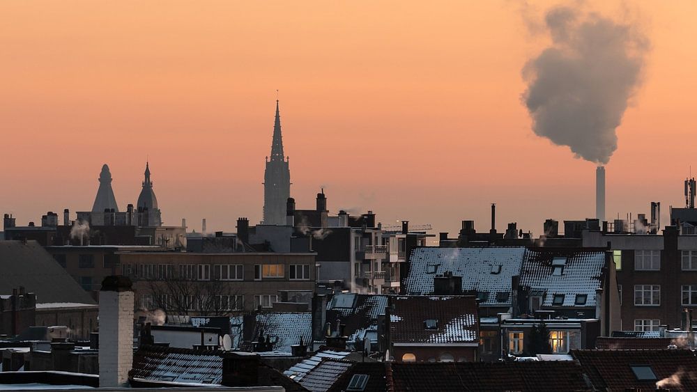 Ein schöner gold-oranger Himmel und der Rauch aus den Schornsteinen