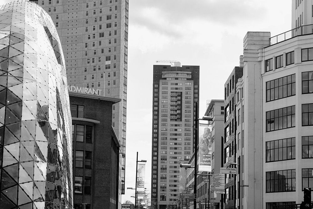 Markante Gebäude im Zentrum von Eindhoven (der Blob, der Admirant und der Philips-Lichtturm).