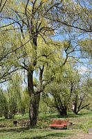 Eine Bank unter den Bäumen, Montréal, Quebec, Kanada