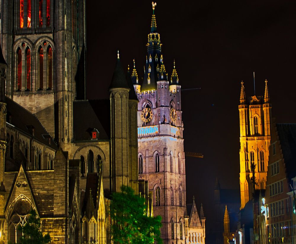 Belgisches Gent bei Nacht, eine schöne Komposition aus dem Zentrum von Gent