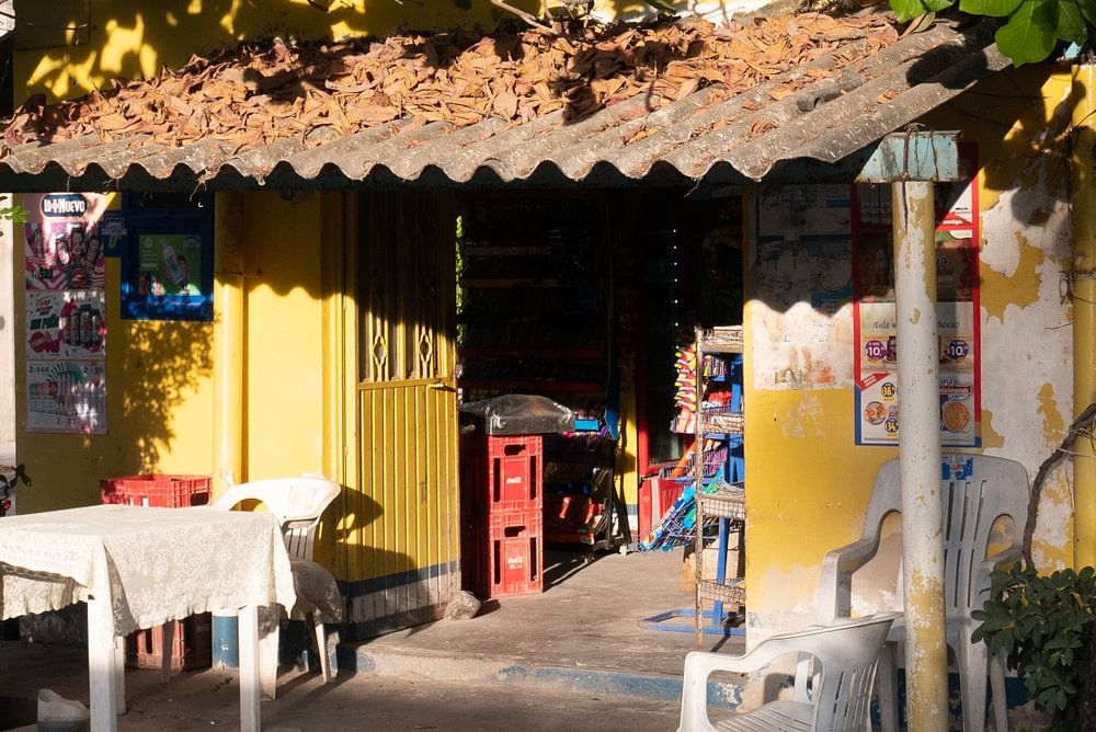 Dies ist eine der vielen Tiendas (Läden), die es in Mexiko gibt. Bei Sonnenuntergang fällt das Licht genau auf sie. So wird ein Moment wirklich eingefangen. Die leeren Stühle sorgen dafür, dass man sich eine ganze Geschichte zu diesem Moment vorstellen kann.