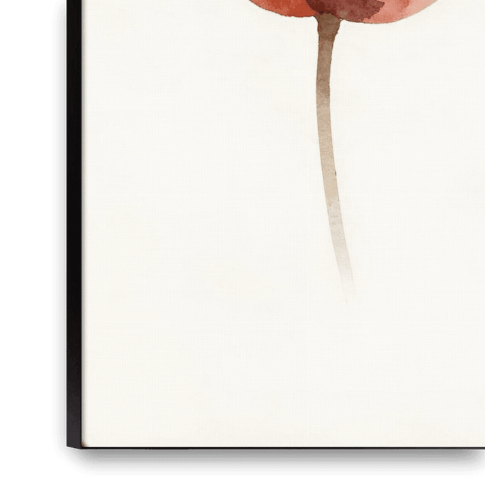 Eine einzelne Mohnblume in warmem Terrakotta-Rosa steht auf einem schlichten cremefarbenen Hintergrund – eine Komposition von klarer Schönheit und emotionaler Direktheit. Die Blütenblätter sind groß, leicht geöffnet und zeigen das charakteristische leichte Knittermuster des Mohns: weiche Rundungen, die an zarte Seide erinnern, mit…
