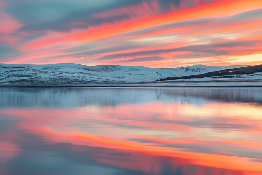 Sonnenuntergänge sind immer schön anzuschauen, aber der Sonnenuntergang über einem See, der von Schnee auf den Bergen umgeben ist, ist magisch. Was für ein Farbklecks... zum Wegträumen!
