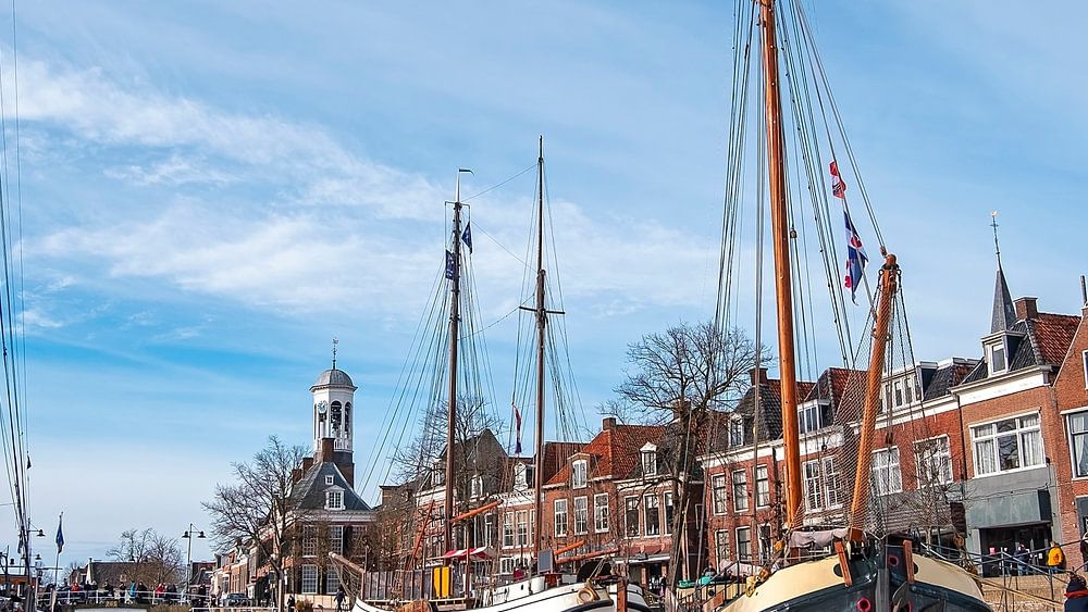 Eisspaß auf der Dokkumer Ee in Dokkum Friesland im Winter in den Niederlanden