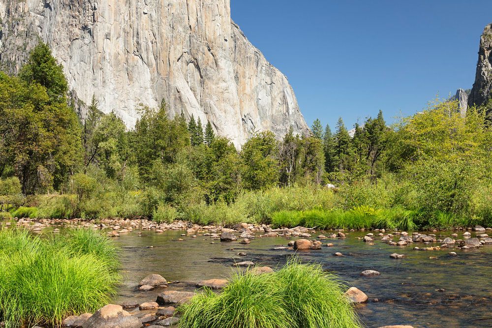 El Capitan und Merced River im Yosemite Valley, Yosemite-Nationalpark, Kalifornien, USA