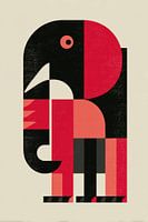Diese verspielte und stilvolle Illustration eines Elefanten besteht aus klaren geometrischen Formen und kräftigen Farbflächen in Rot, Schwarz und zartem Beige. Das minimalistische Design verbindet einen modernen grafischen Stil mit einem Retro-Flair, wobei Einfachheit und Ausgewogenheit im Mittelpunkt stehen. Die subtile Textur verleiht…