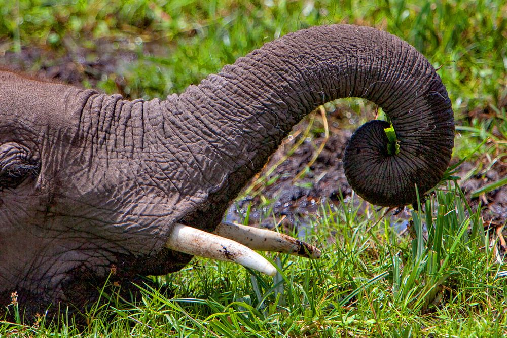 Bestelle das Foto Elefant mit Reiher von Peter Michel als Reproduktion auf Leinwand, Alu-Dibond, als Poster, Fototapete oder Acrylglasbild.