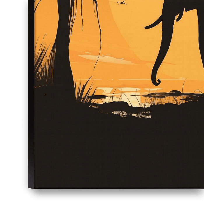 Elefant und Mann Sonnenuntergang Minimalismus Gemälde mit einem schönen und einzigartigen Stil. Mit schönen Farbtönen und einem einzigartigen Design ist dies ein stilvoller Fotodruck, der in jedem Raum gut aussieht. 100% einzigartig und originell!