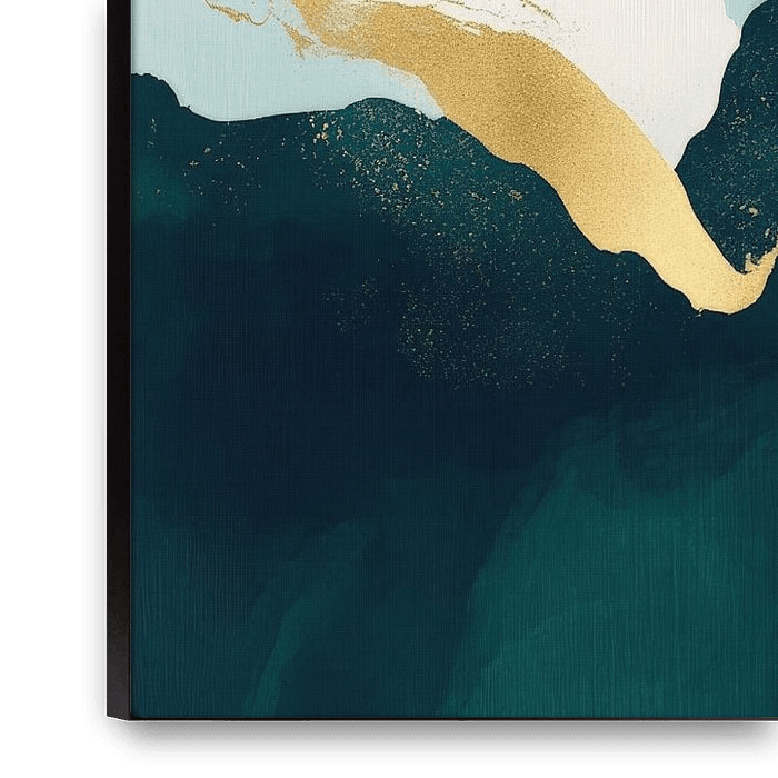 Sanfte Wellen in tiefem Smaragdgrün und zartem Gold erwecken den Eindruck eines ruhigen, geheimnisvollen Flusses. Die harmonische Farbkomposition und dynamischen Bewegungen verleihen diesem Kunstwerk eine beruhigende Energie, ideal für ein modernes Wohnzimmer, wo sie stilvoll sowohl Eleganz als auch Gelassenheit vermittelt.