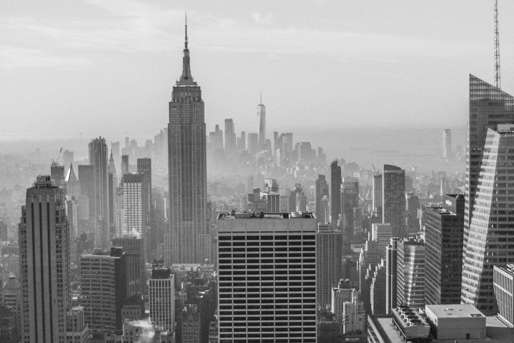 Fotodruck des Empire State Building in New York in schwarz-weiß.