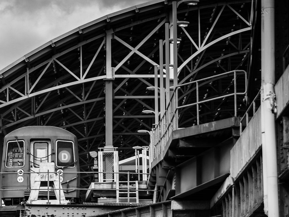 Endhaltestelle einer U-Bahn-Linie in New York in einer Schwarz-Weiß-Fotografie