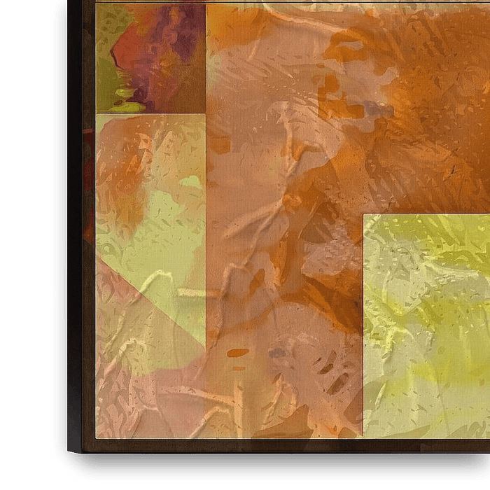 Ein digitales Werk, das auf Erdtönen von Braun, Beige, Gold und anderen warmen Farben über geometrischen Formen basiert. Entspannend und beruhigend, ein beruhigendes Design für Ihre Wand.