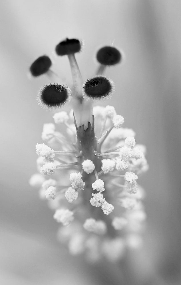 Während die Farbe oft die Stärke der Blumenfotografie bestimmt, habe ich mich bei dieser Aufnahme für die reine Form entschieden. Die Aufnahme des Blütenherzens in Schwarz-Weiß verschiebt den Fokus auf Struktur, Wiederholung und Textur. Der Pollen, normalerweise nur ein Detail, wird nun zu einer Landschaft für sich - zerbrechlich und monumental zugleich.