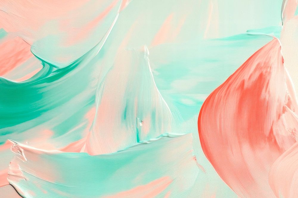 Sanfte Wellen in sanftem Mint und zartem Korall betören den Betrachter, während die verspielten Pinselstriche eine dynamische Energie ausstrahlen. Diese harmonische Farbkombination bringt Frische und Kreativität in jeden Raum und eignet sich perfekt für das Büro, wo Inspiration und Ideen sprießen können.