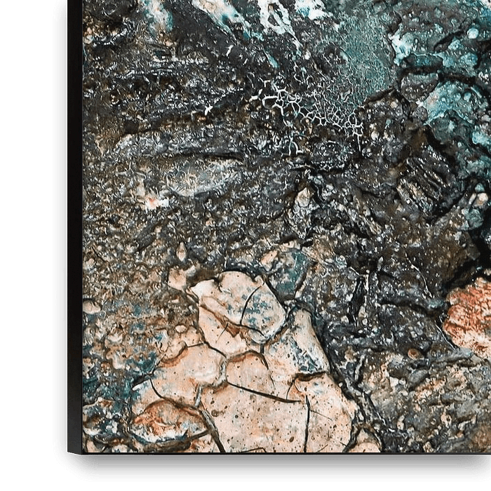 Detailfoto eines Mixed-Media-Gemäldes, das ich gemacht habe, inspiriert von der Unterwasserwelt der Malediven. Das Foto kann auf 4 Arten präsentiert werden.