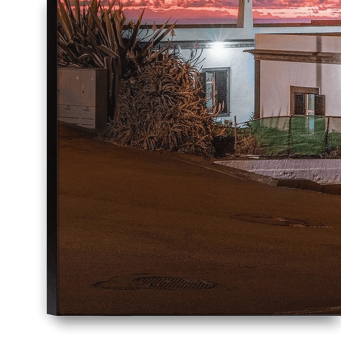 Bestelle das Foto Farbenfroher Sonnenuntergang an der Ponta do Pargo | Madeira Leuchtturm von Daan Duvillier | Dsquared Photography als Reproduktion auf Leinwand, Alu-Dibond, als Poster, Fototapete oder Acrylglasbild.