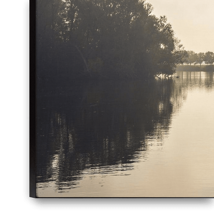 Bestelle dieses Landschafts-Wandbild Farbfoto eines holländischen See auf einem nebligen Herbstmorgen von Ruud Morijn als Reproduktion auf Leinwand, Alu-Dibond, als Poster, Fototapete oder Acrylglasbild.