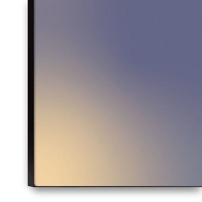 Ihre gewählte Kunst auf Leinwand, gespannt in einem Aluminiumrahmen. Schnell und einfach austauschbar für eine frische Ausstrahlung und ganz nach Ihren Wünschen.