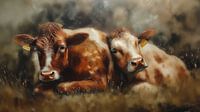 Bestelle dieses Kuh-Wandbild Faule Kühe von Marjolein Deelen als Reproduktion auf Leinwand, Alu-Dibond, als Poster, Fototapete oder Acrylglasbild.