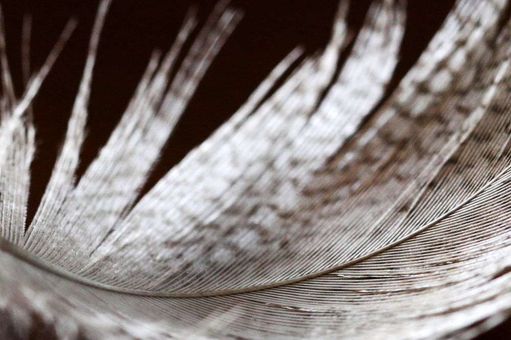 Eine Vogelfeder, so zerbrechlich und zart und so schön für Fotografen. Federleicht vor einem dunklen Hintergrund, Widersprüche einander zugewandt, schwere, sondern auch Licht, Take Leben, wie es kommt.