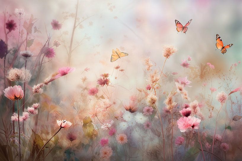 Bestelle dieses Blumen-Wandbild Feld mit Blumen von Hetty Lamboo als Reproduktion auf Leinwand, Alu-Dibond, als Poster, Fototapete oder Acrylglasbild.
