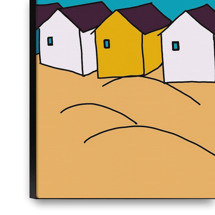 Bestelle das digitale Kunst Bild Ferienhäuser am Strand von MishMash van Heukelom als Reproduktion auf Leinwand, Alu-Dibond, als Poster, Fototapete oder Acrylglasbild.