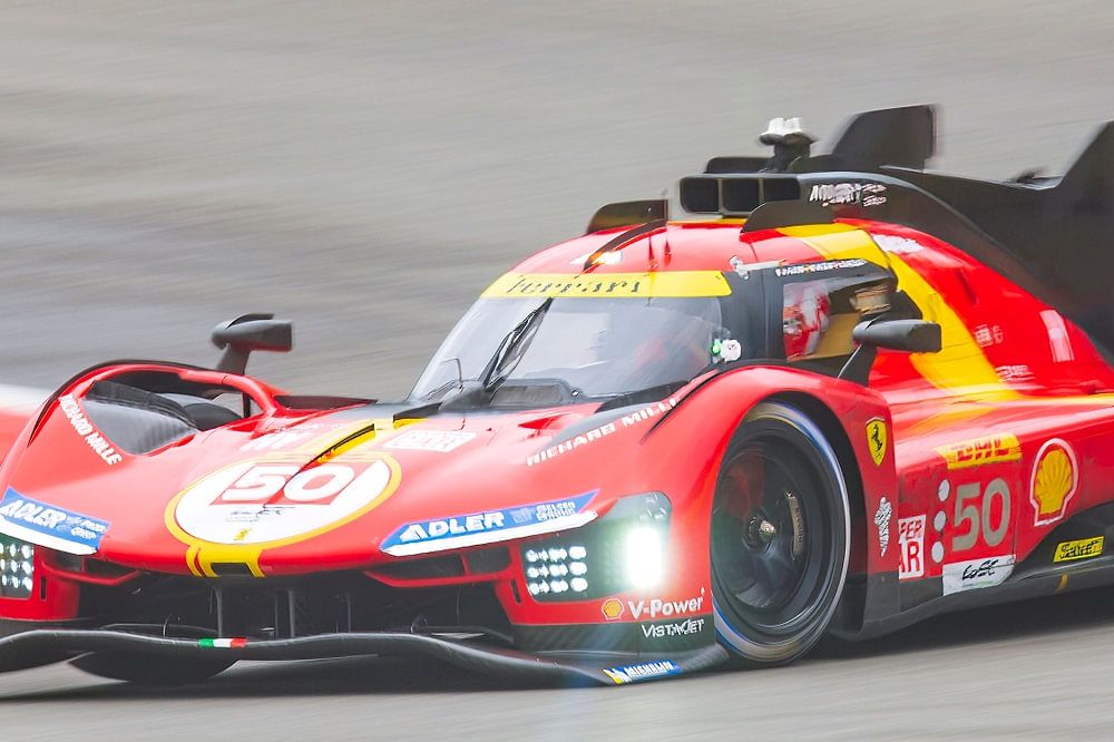 Ferrari 499P Hypercar für das Team AF Corse Ferrari bei der Fahrt durch die La Source Hairpin während des TotalEnergies 6 Hours of Spa-Francorchamps - FIA WEC-Rennens 2023 auf dem Circuit de Spa-Francorchamps. Der Ferrari 499P ist ein von der Scuderia Ferrari gebauter Sportprototyp, der für das Team AF Corse Ferrari in der FIA World Endurance Championship in der Le Mans Hypercar-Klasse antritt. Der 499P markiert den 50. Jahrestag des letzten Ferrari-Sportprototyps, der um den Gesamtsieg bei den 24 Stunden von Le Mans kämpfte.