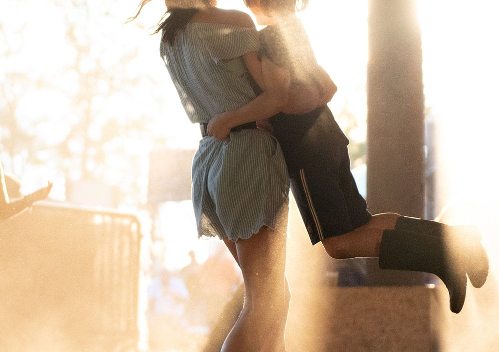 Kinder spielen während des Sonnenuntergangs bei einem Festival