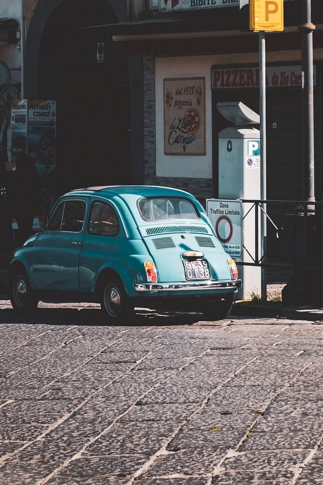 FIAT, Fiat 500 (1957), Italien, Pizza, Sommer, Oldtimer, Auto, Retro, Blau (Farbe), Landschaft, Straße (asphaltierte Straße)