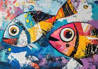 Bestelle dieses abstrakte Wandbild Fischmalerei | Fischfarben von ARTEO Gemälde als Reproduktion auf Leinwand, Alu-Dibond, als Poster, Fototapete oder Acrylglasbild.