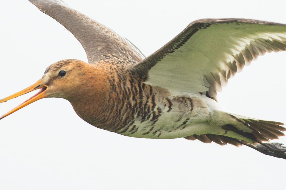 Fliegender Schwarzschwanzschnepfe mit hohem Schlüssel