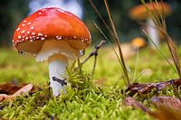 Bestelle das Foto Fliegenpilz im Regen von Linda Lu als Kunstdruck auf Leinwand, Alu-Dibond, als Poster, Fototapete oder Acrylglasbild.