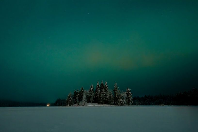 Das Auffinden von Nordlichtern ist magisch. Dieses Bild entstand in einem der seltenen Momente, in denen der Tag neblig begann und der Abend etwas Besonderes versprach. Als sich Stille über die Landschaft legte, zeigten sich die Nordlichter zaghaft. Der Himmel färbte sich in ein sanftes Grün und legte sich wie ein Schleier über die…
