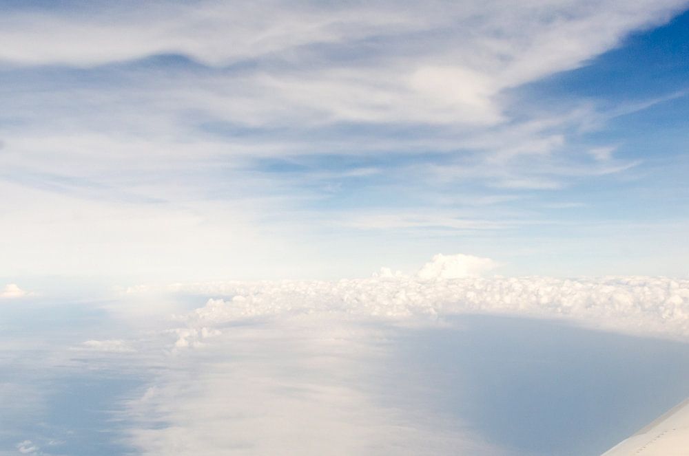 Flugzeug Tragfläche mit Himmel über den Wolken