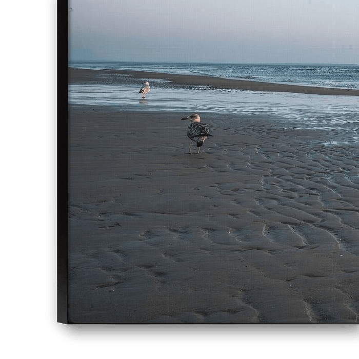 Dieses Küstenfoto aus Flushing zeigt ein beeindruckendes Frachtschiff, das ruhig am Horizont entlangfährt, während im Vordergrund eine leuchtend rote Boje auf dem nassen Sand liegt - mit einer schweren Kette mit dem Meer verbunden. Möwen suchen auf dem gerippten Gezeitengrund nach Nahrung und bringen Leben ins Bild. Der kühle blaue Himmel und das sanfte Abendlicht verstärken die Atmosphäre von Stille und maritimer Aktivität. Ein kraftvolles und visuell ausgewogenes Bild, das Industrie, Natur und das Leben an der Küste miteinander verbindet.
