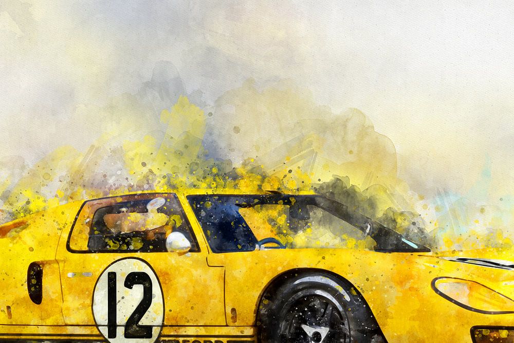 Illustration aus einer Serie von legendären Sport- und Rennwagen. Gestaltet, aus Liebe zum klassischen Rennsport. Gemalt mit Aquarellfarben auf Papier.