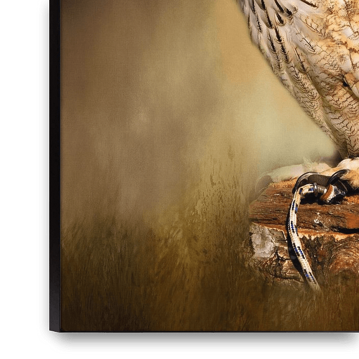 Bild eines Uhus mit schön gemaltem Hintergrund in braun-roten und orangefarbenen Farben.