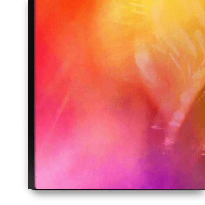 Ihre gewählte Kunst auf Leinwand, gespannt in einem Aluminiumrahmen. Schnell und einfach austauschbar für eine frische Ausstrahlung und ganz nach Ihren Wünschen.