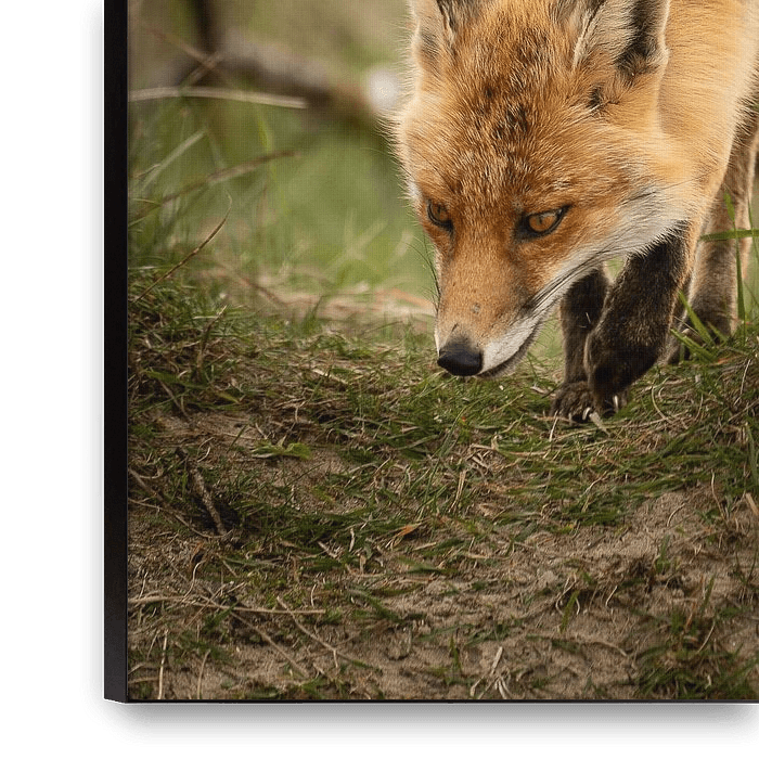 Bestelle das Foto Fox sucht. von Danny Leij als Reproduktion auf Leinwand, Alu-Dibond, als Poster, Fototapete oder Acrylglasbild.