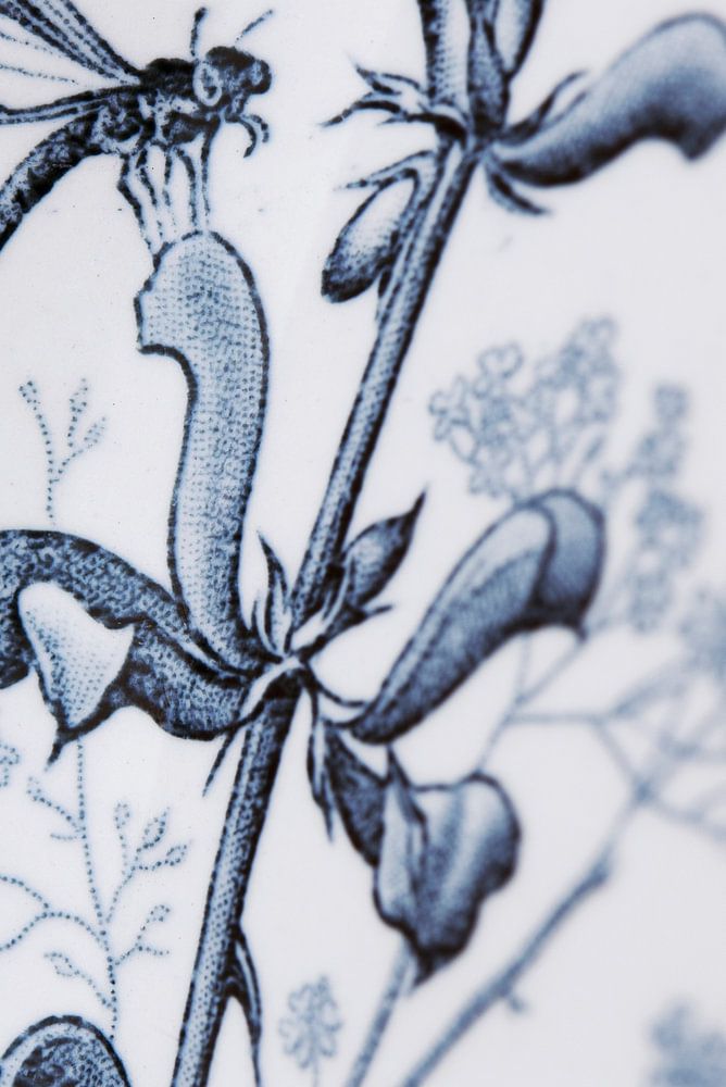 Bestelle dieses Blumen-Wandbild Französischer Teller Detail blau und weiß von Blond Beeld als Reproduktion auf Leinwand, Alu-Dibond, als Poster, Fototapete oder Acrylglasbild.