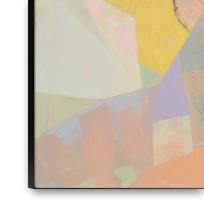 Dieses exquisite Gemälde fängt die Essenz moderner Kunst durch das stilisierte Porträt einer Frau ein, dargestellt in lebhaften geometrischen Formen und sanften Farbtönen. Die harmonische Komposition aus Orange-, Grün- und Violetttönen schafft eine beruhigende und zugleich dynamische Atmosphäre. Ideal für Wohnräume oder Büros, verleiht…