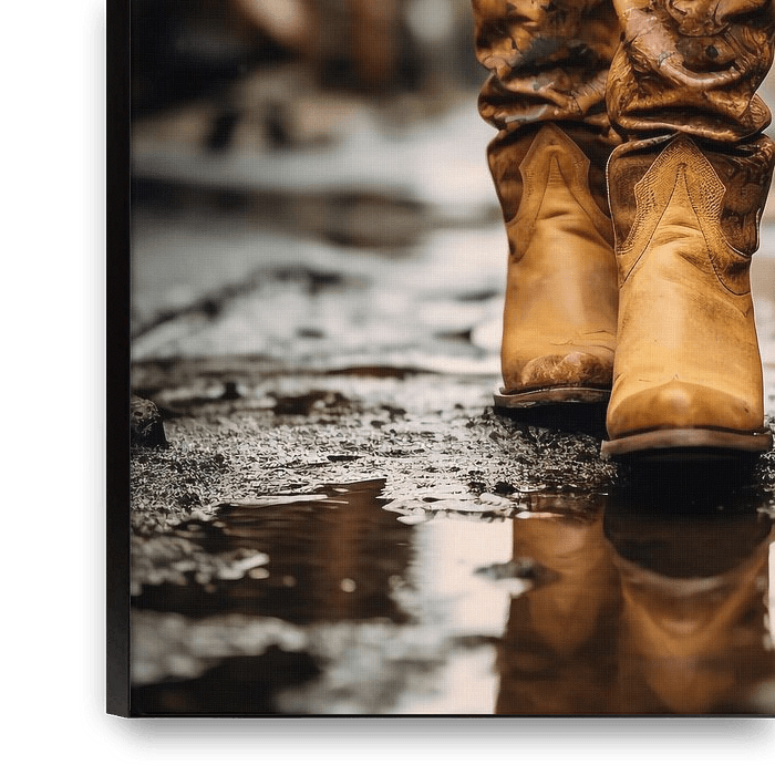 Frau mit Kuhstiefeln geht im Schlamm spazieren