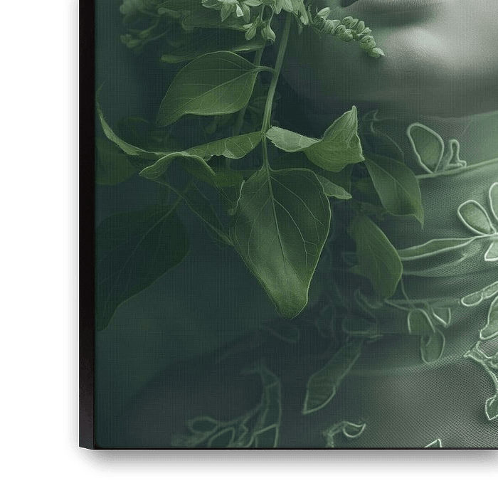 Bestelle das digitale Kunst Bild Frau mit blumigem Haar von Bert Nijholt als Reproduktion auf Leinwand, Alu-Dibond, als Poster, Fototapete oder Acrylglasbild.