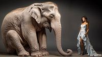 Bestelle das digitale Kunst Bild Frau vor einem Elefanten stehend von Luc V. de Zeeuw als Reproduktion auf Leinwand, Alu-Dibond, als Poster, Fototapete oder Acrylglasbild.