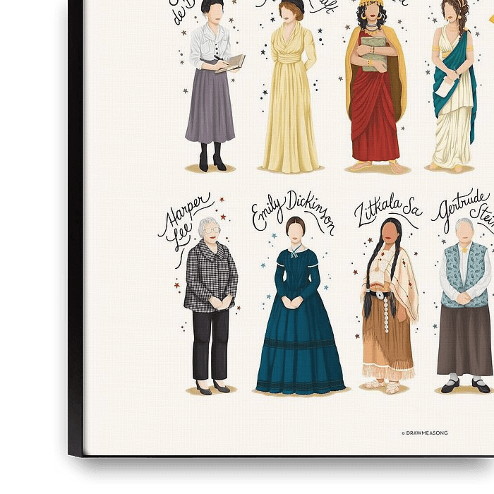 Bestelle diese Illustration Frauen in der Literatur von Nour Tohme als Reproduktion auf Leinwand, Alu-Dibond, als Poster, Fototapete oder Acrylglasbild.